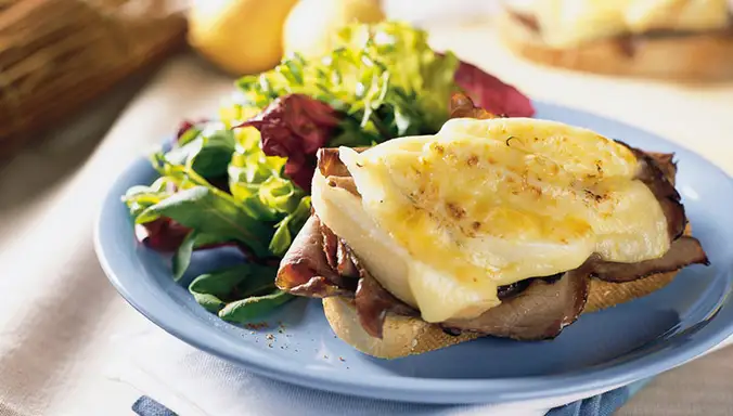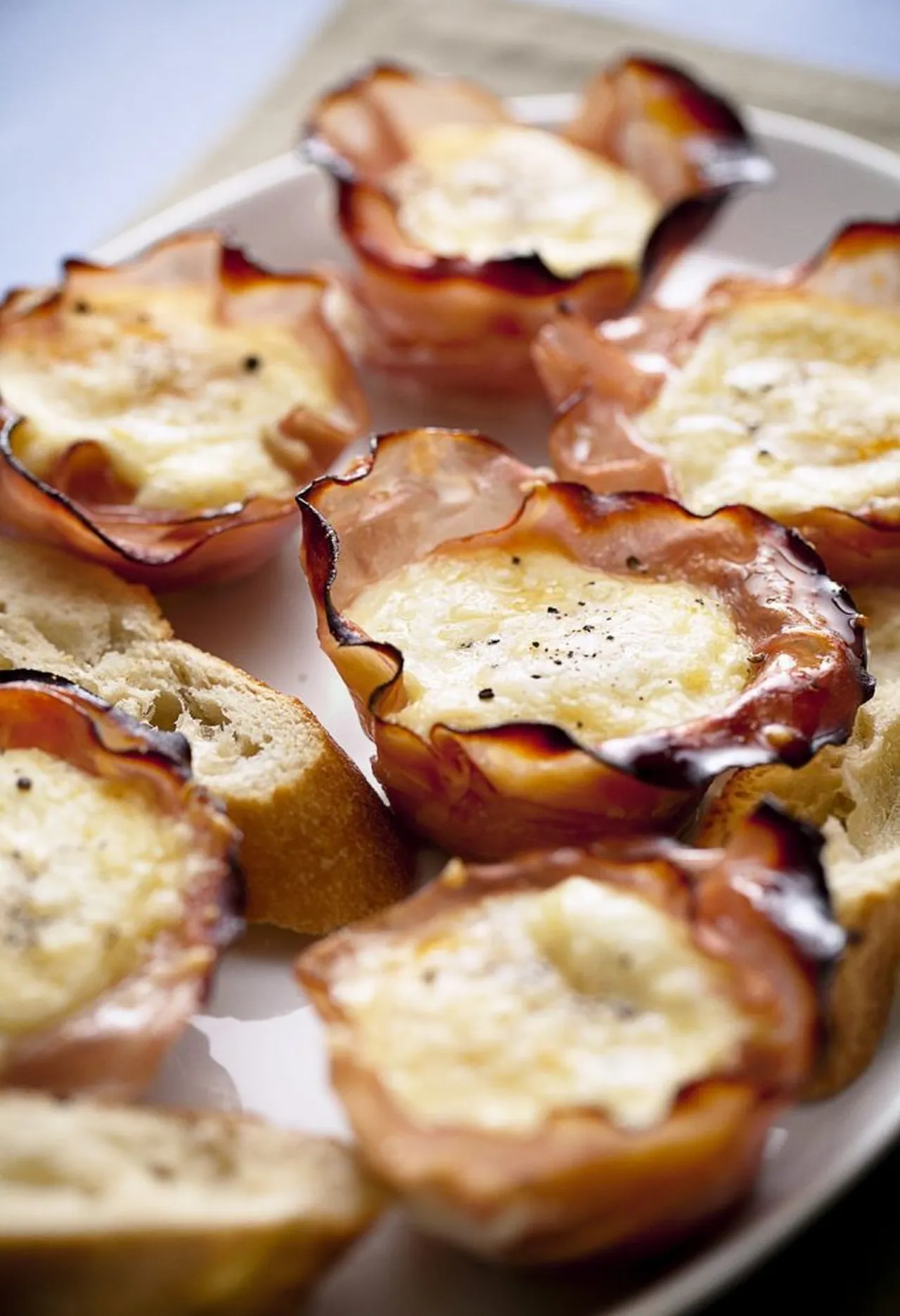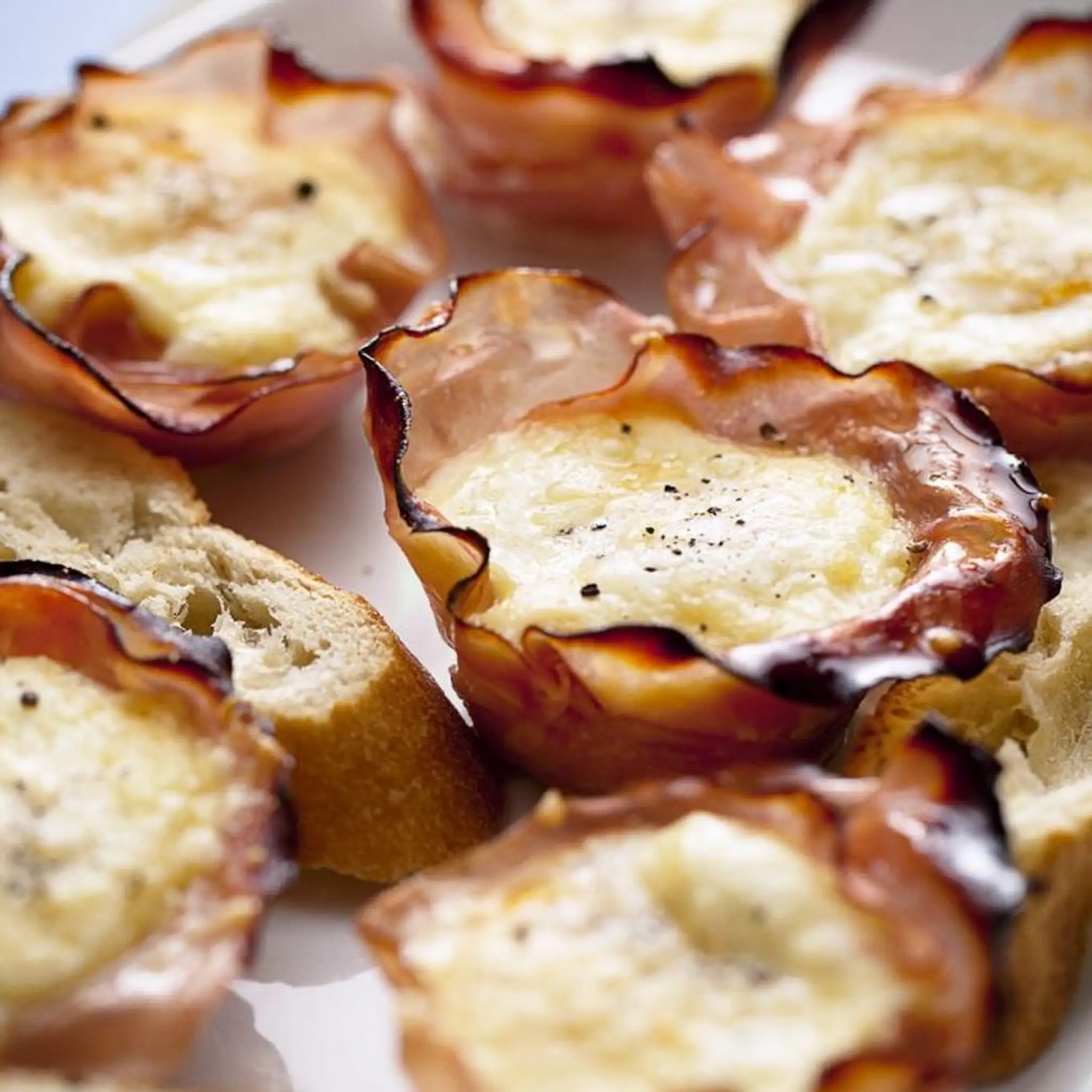 Bake for approximately 15 minutes or until the cheese has melted and the ham is crispy.